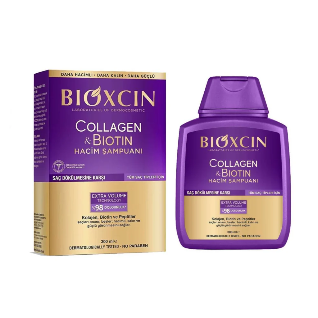 شامپو ضدریزش مو بیوکسین مدل کلاژن و بیوتین حجم 300 میلی لیتر