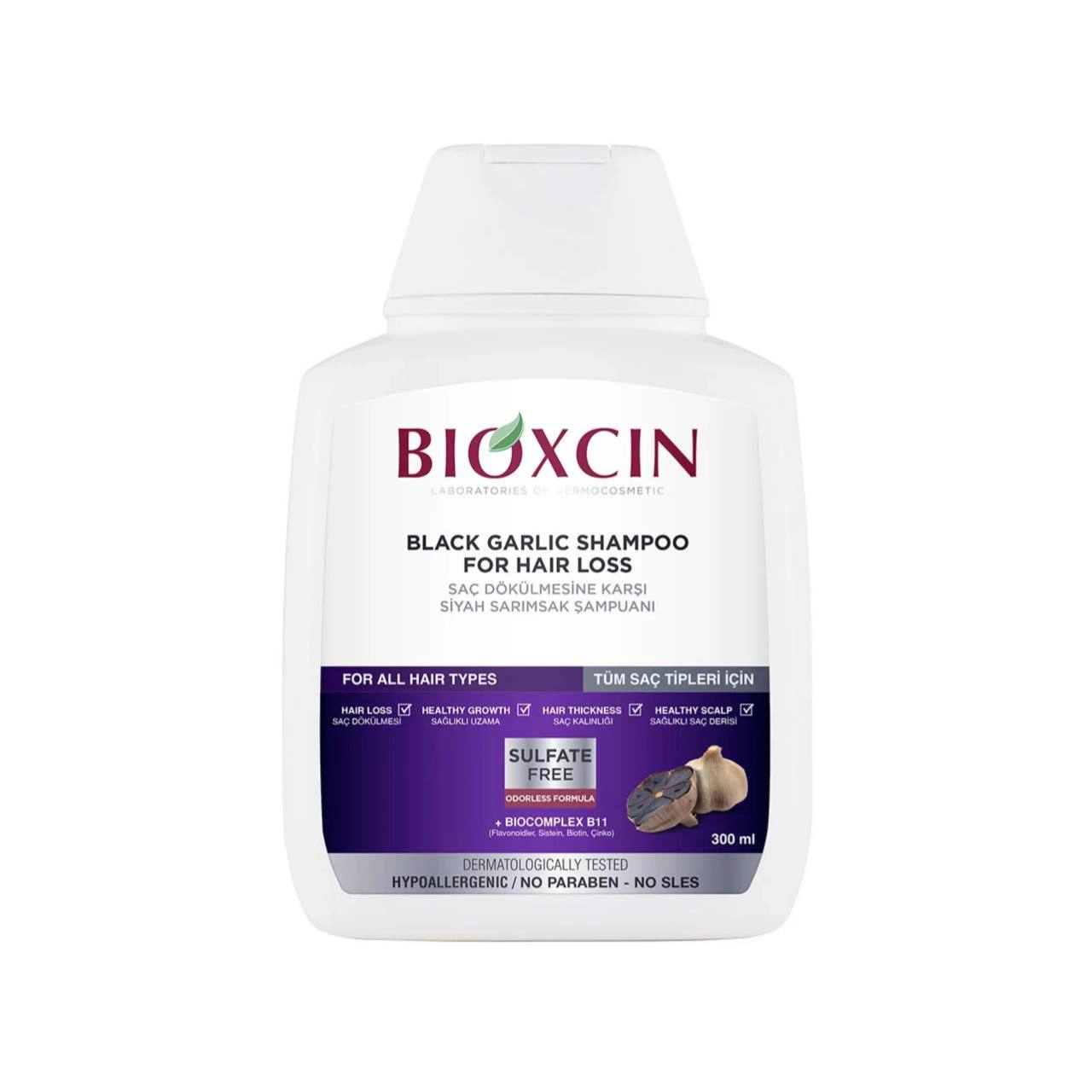شامپو ضدریزش مو بیوکسین مدل عصاره سیر سیاه حجم 300 میلی لیتر